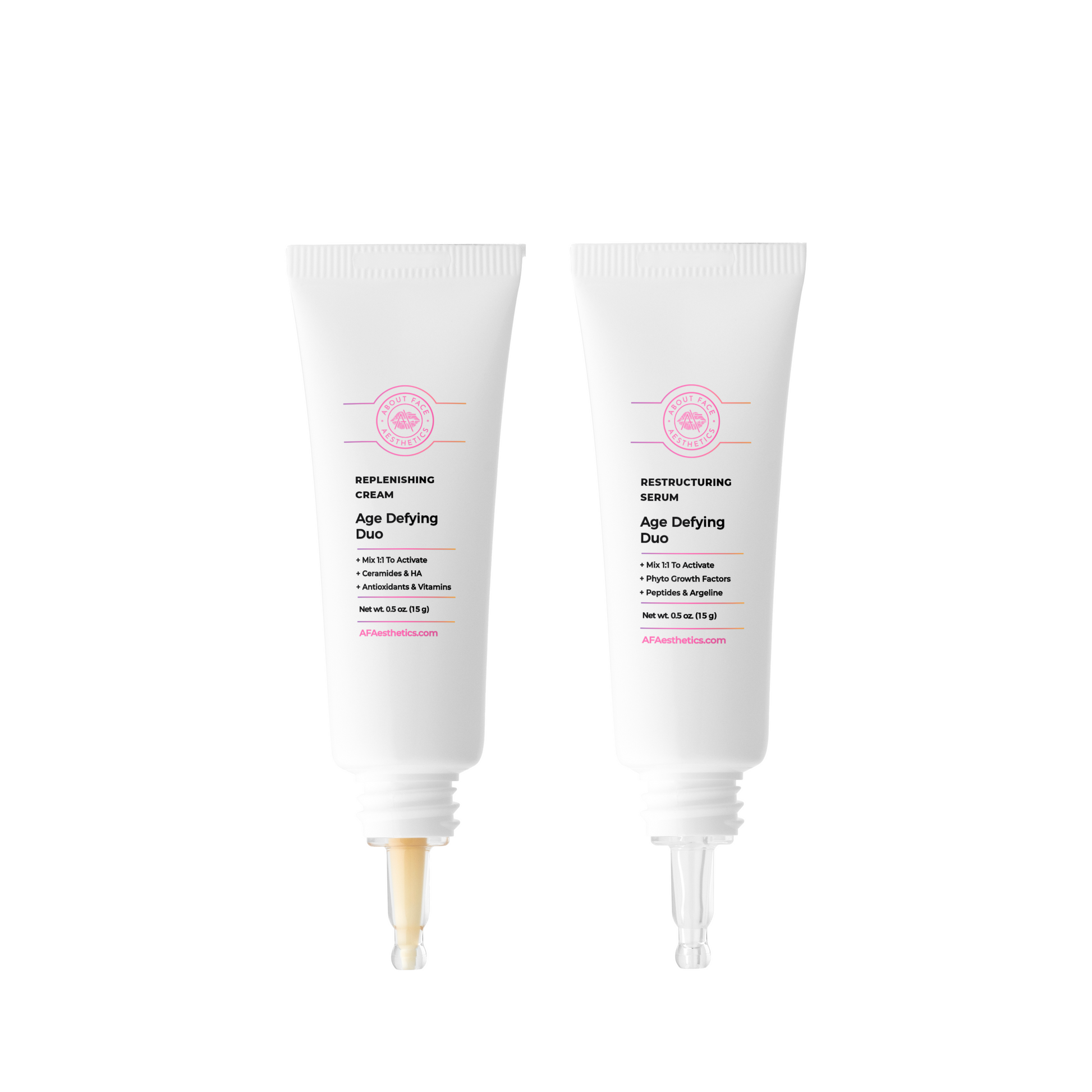 Turn back the clock with the Restructure & Replenish Age Defying Duo, About Face Aesthetics’ best-selling anti-aging treatment. This innovative two-part serum system is designed to visibly reduce wrinkles, improve elasticity, and restore hydration while protecting your skin from environmental damage.